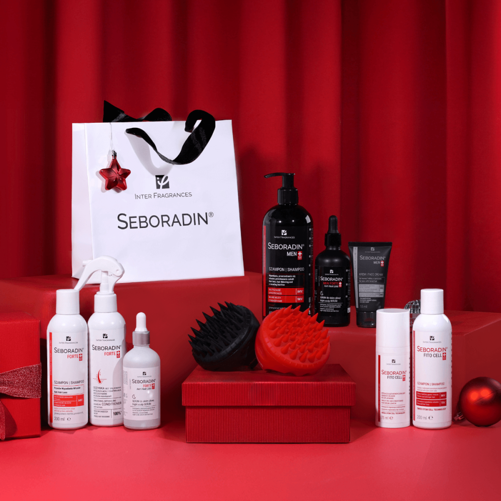 Jednymi z najczęstszych zapytań i fraz wpisywanych w internetowe wyszukiwarki są: „Co kupić mamie pod choinkę?”, „Prezent dla przyjaciółki na święta” czy bardziej ogólnie – „Z jakich prezentów cieszą się kobiety?” Możliwości mamy naprawdę wiele, ale jedno jest niemal pewne – ważne, by prezent wiązał się z przyjemnymi aspektami życia, a obdarowana osoba poczuła się wyjątkowo. Jeśli Twoja mama, siostra lub przyjaciółka ceni świadomą i skuteczną pielęgnację włosów, z pewnością ucieszy się z zestawu prezentowego do włosów Seboradin FORTE lub wysokiej jakości kosmetyków z komórkami macierzystymi Seboradin FITO CELL. Inną, równie trafioną opcją, będzie szampon na wypadanie włosów, wcierka zagęszczająca włosy i odżywka w sprayu, czyli zestaw Seboradin FORTE wzmacniający włosy, który pozwala szybko i efektywnie zadbać o fryzurę. Obie wymienione serie pozostawiają na kosmykach subtelny zapach, a czerwono-biała kolorystyka ich opakowań świetnie wpisuje się w świąteczny klimat.